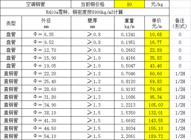 空調(diào)紫銅管與保溫套的計(jì)算方法